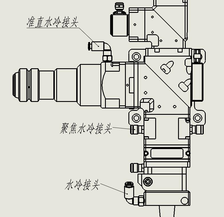 水冷固定板上,有進(jìn)水口和出水口。建議功率高于1000瓦時(shí),啟用水冷裝置。此外,本系列切割頭功率不能大于2000瓦。管道結(jié)構(gòu)請(qǐng)參考圖4。